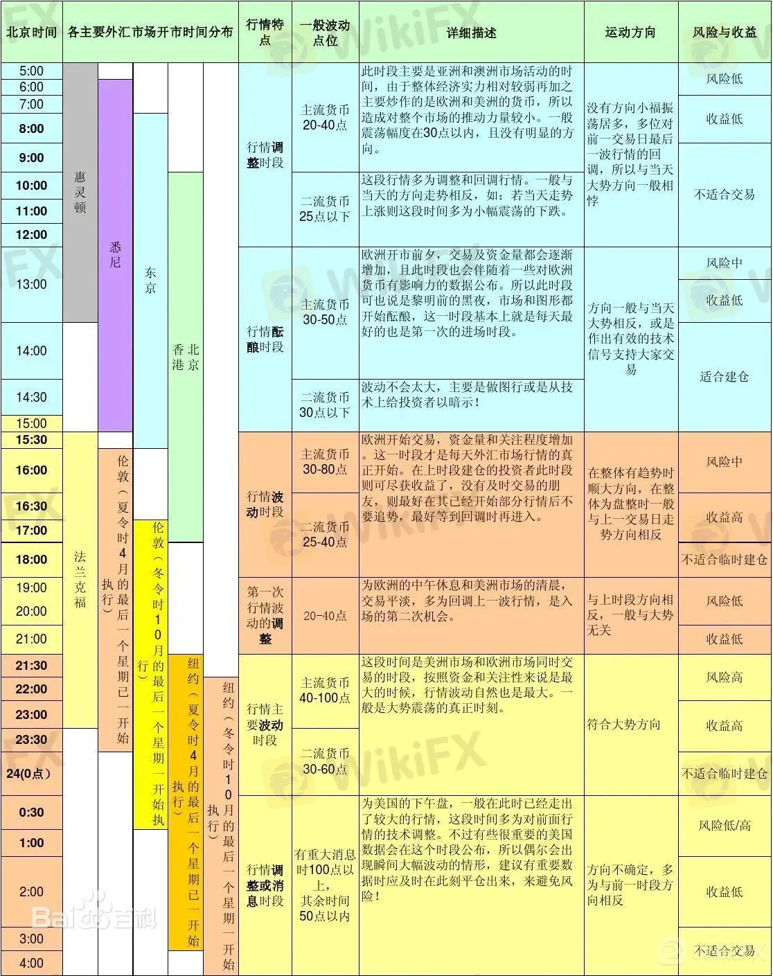 5、21:00-24:00,这段时间是美洲市场和欧洲市场同时交易的时段,也是行情主要波动的时间段,风险高且收益高,适合交易但不适合临时建仓。